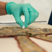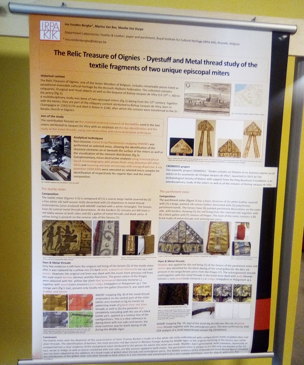 Les mitres ont également fait l’objet de plusieurs communications présentant les résultats de recherche sur le style, l’iconographie ou encore la technique et l’analyse des matériaux constitutifs. De nombreuses photos prises par Guy Focant, ainsi qu’un film réalisé par Emmanuel Legrand, permettent de se replonger dans les différentes phases de cette étude menées sur plusieurs fronts pendant près de 3 ans.