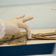 La première journée du colloque a porté uniquement sur les résultats des diverses recherches menées par les institutions engagées dans le projet CROMIOSS. L’étude anthropologique a permis d’identifier 26 os, tous du même individu, et 7 dents. Des arrêts de croissance ont pu être observés et s’expliquent par un stress physique lors de la croissance de l’individu, comme maladies ou phases de malnutrition. Les traces de coupures, observées également sur les ossements, indiquent quant à elles un démembrement du corps, probablement lors d’un traitement apporté au corps en vue d’un long transport.