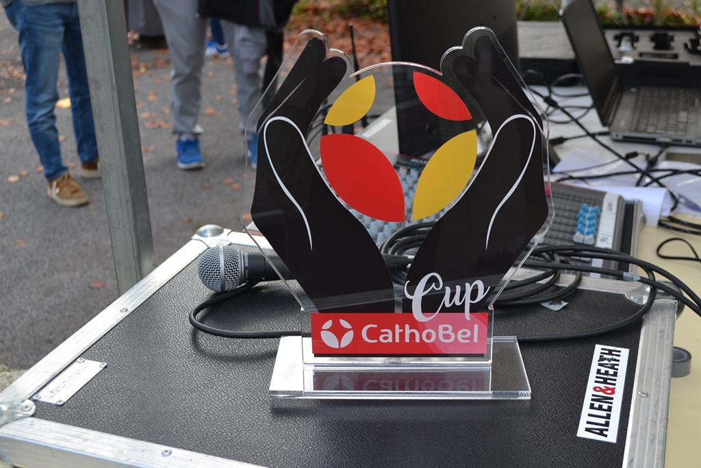Et puis du foot, du foot et du foot avec la toute première « Cathobel Cup » : un tournoi qui a vu s’affronter dans un stade St Jean-Paul II surchauffé, avec fair play, bonne humeur mais quand même beaucoup de compétitivité, les cinq équipes diocésaines mises sur pied. Condition pour participer : constituer une équipe comprenant des garçons, des filles et des prêtres ou religieux. Après une entrée en lice tonitruante et deux belles victoires (6-1 contre Liège et 4-3 contre Bruxelles), avouons-le, on espérait que l’équipe tournaisienne parviendrait à accéder à la finale. Le coach Philippe Pardonce et les fans ont tout fait pour soutenir leur valeureuse équipe, qui a pourtant dû s’incliner face au Brabant wallon puis à Namur, les deux finalistes. Le premier trophée mis en jeu par Cathobel a été remis par Mgr Kockerols, impartial mais ravi, aux joueurs et joueuses du Brabant wallon au terme d’une séance de tirs au but insoutenable de suspense !