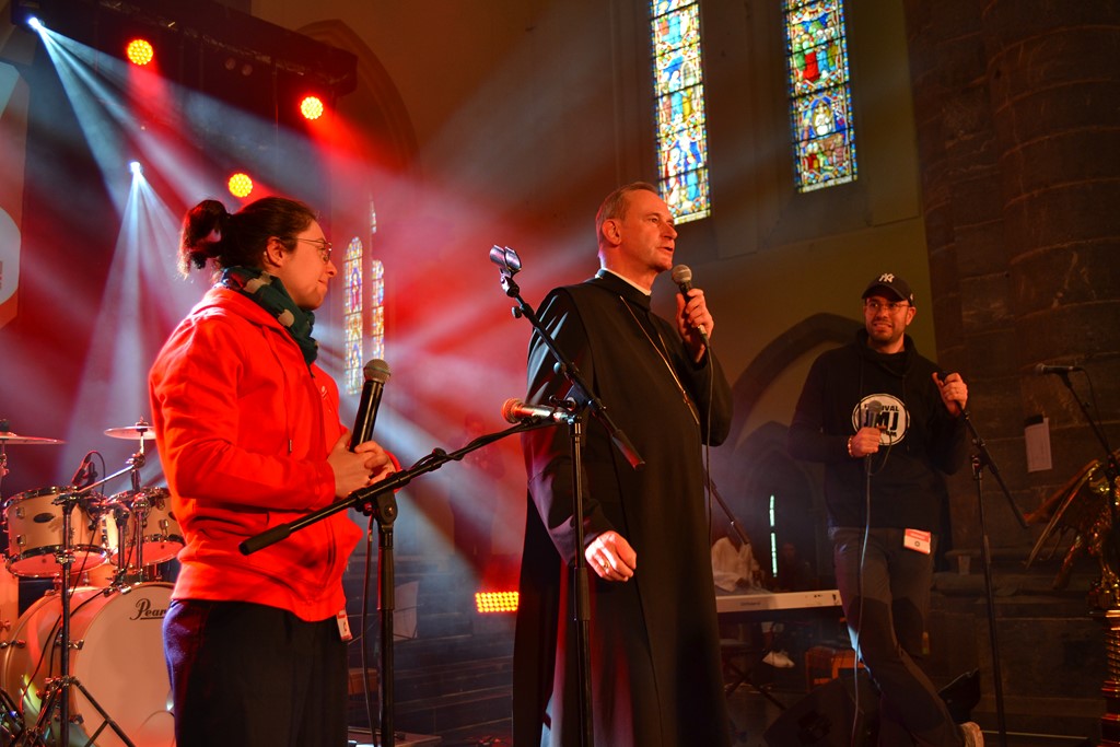 Quelques instants plus tard, entouré d’Anaïs Guérin et de Luc Mathues, le père abbé de Maredsous Bernard Lorent, se sentant un peu rock star, ouvrait officiellement ce festival de préparation aux prochaines JMJ.