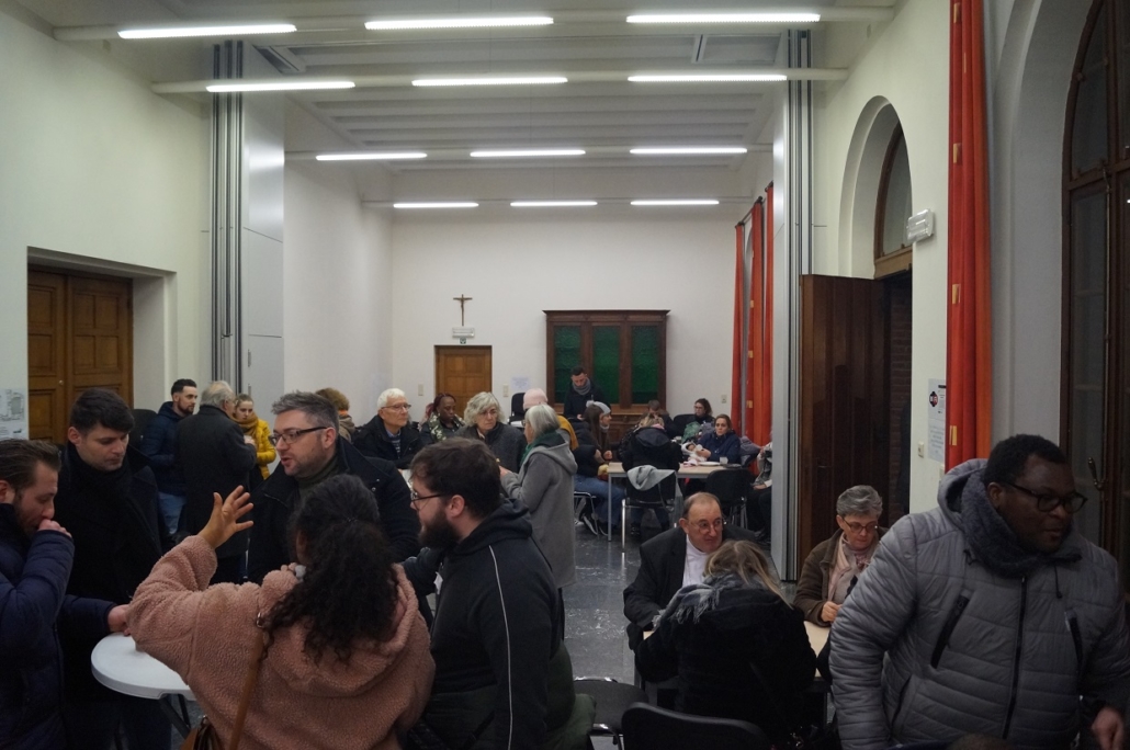 Dès 14h, l’ensemble des participants répartis en trois groupes s’est mis en route pour une tournante en trois temps pour que chacun découvre l’ensemble du parcours. Le premier groupe de catéchumènes a commencé par rencontrer Mgr Harpigny. Après un premier moment de timidité vite passé, chacun a pu partager un petit bout de son chemin de foi. L’écoute de ces témoignages est édifiant pour tous et on découvre Dieu présent aujourd’hui et chaque jour à l’œuvre en chacun.