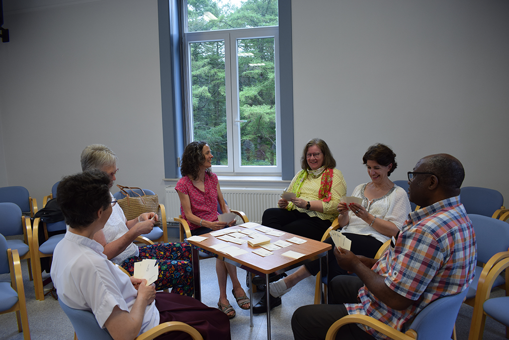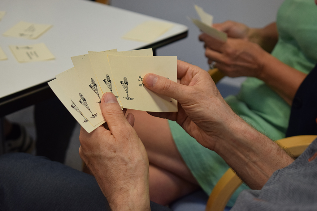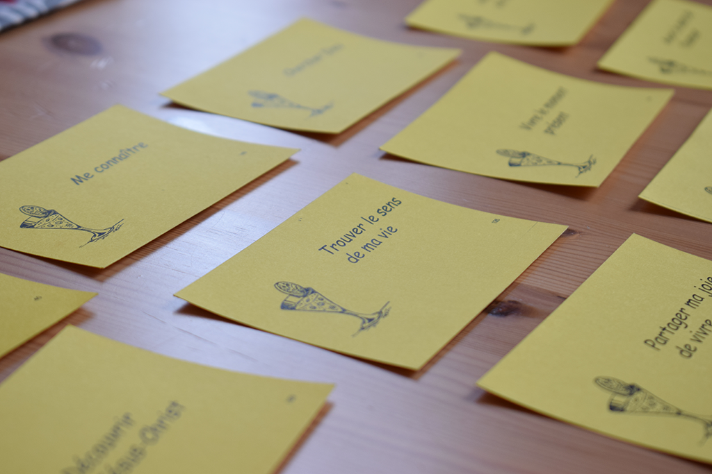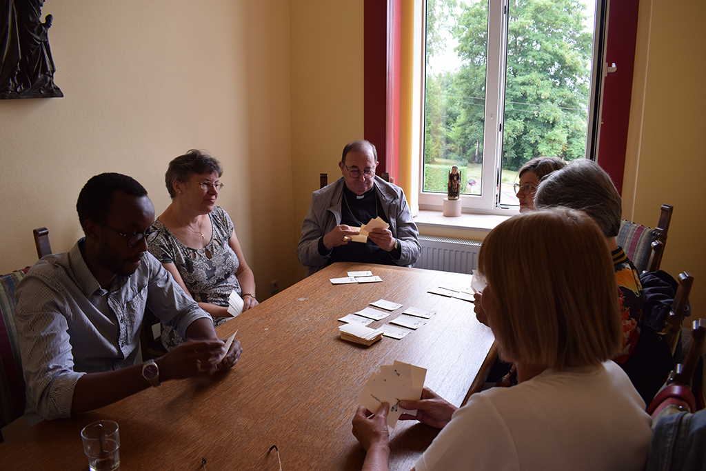 Quoi de mieux pour apprendre à se connaître qu’un cocktail du bonheur ? C’est l’activité qu’a proposée le vicaire général, Olivier Fröhlich. Le but ? Trouver cinq cartes qui correspondent à notre définition du bonheur. S’en est suivi un partage de témoignages et d’arguments sur les cartes sélectionnées et une mise en perspective des valeurs de chacun ou chacune.