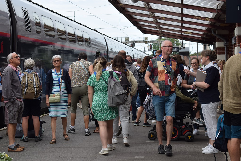 Le ballet avait déjà commencé tôt en matinée avec les départs des pèlerins de Bruges, Gand et Anvers. Après un peu d’accalmie, ce sont les Tournaisiens, les Namurois et d’autres Brugeois qui ont pris le relais. Deux retardataires d’Anvers ont même trouvé une place pour rejoindre leur groupe !