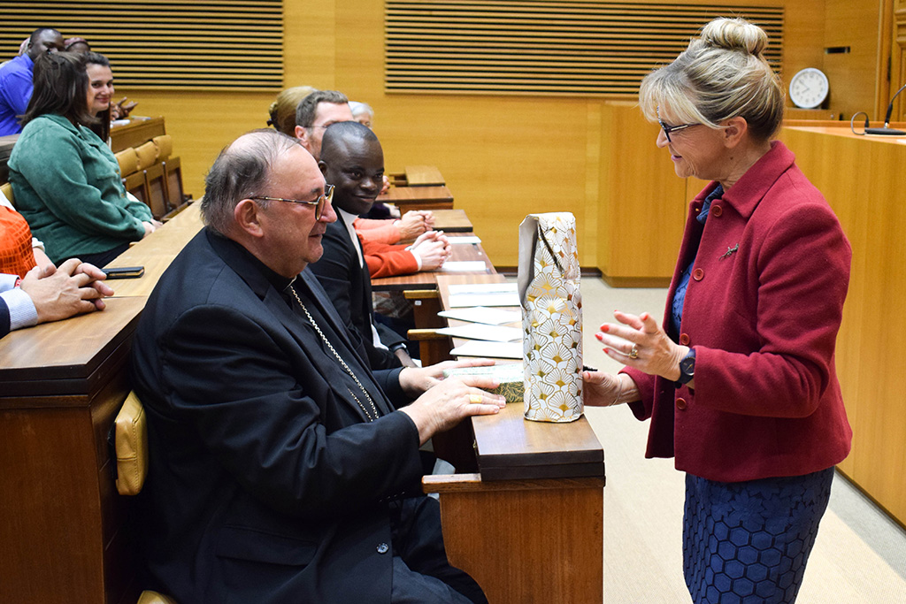 Il a également rappelé le rôle important que joue l’Institut Supérieur de Théologie dans la société de notre temps :« Il ne s’agit pas d’un enseignement poussiéreux, figé dans le temps depuis je ne sais quelle période du passé, un enseignement qui serait ‘ hors du temps et de l’espace ’ de la vie des hommes et des femmes d’aujourd’hui : l’I.S.T.D.T a vocation au contraire de rencontrer les grandes questions de la vie des hommes et des femmes, des enfants et des jeunes en particulier, d’aujourd’hui ».