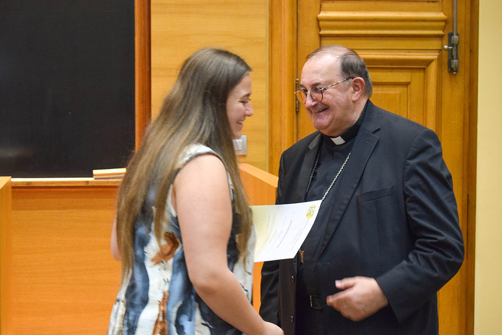 L’Eucharistie, animée par la chorale des étudiants, s’est terminée avec la bénédiction des enseignants finalistes. L’ensemble des personnes présentes a ensuite été convié à rejoindre l’auditoire du Séminaire de Tournai pour assister à la proclamation des résultats 2022-2023 et à la remise des certificats et attestations de réussite.