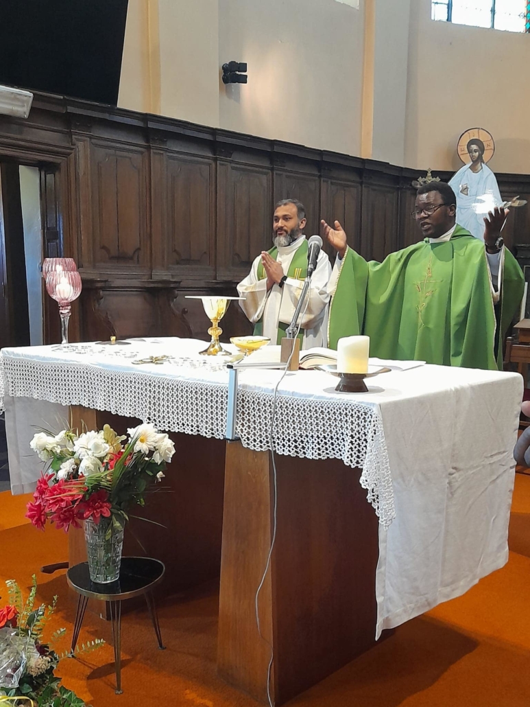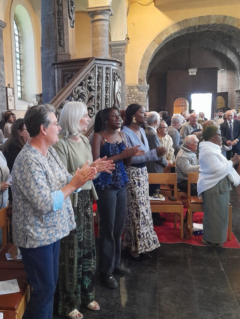 La deuxième étape était la messe interculturelle célébrée le dimanche matin en l’église Saint-Martin à Strépy. Cette célébration était présidée par notre curé, le Père Etienne Ntale, religieux barnabite d’origine congolaise et concélébrée par le Père Jyothis George, religieux barnabite d’origine indienne. Ils ont pu souligner l’importance de l’interculturalité au sein de notre unité pastorale du Val d’Haine où l’on rencontre des frères et sœurs de toutes les origines (R.D.C, Rwanda, Philippines, Inde, Italie…).