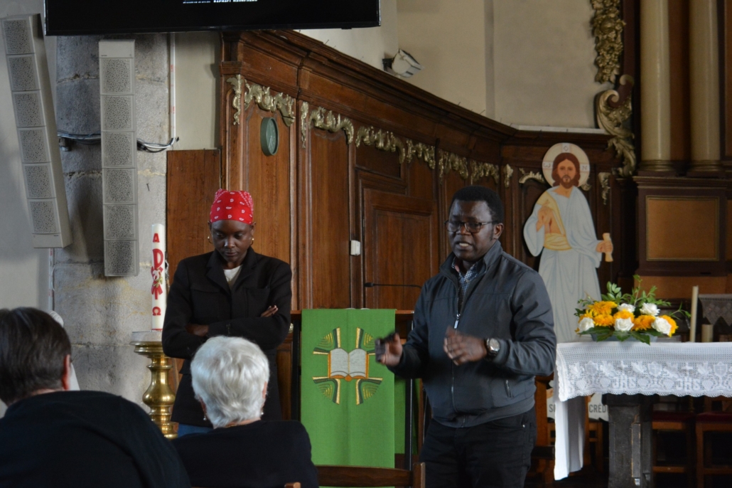 Cette séance était suivie d’un échange animé par notre curé, le Père Etienne Ntale, ainsi que d’un émouvant témoignage de Sandrine, ressortissante de République Démocratique du Congo, demandeuse d’asile en tant qu’exilée politique depuis de nombreuses années et toujours en attente de papiers… Elle nous a raconté sa vie dans l’angoisse d’être expulsée, envoyée dans un centre fermé, rapatriée dans son pays, passant de famille en famille afin d’être hébergée.