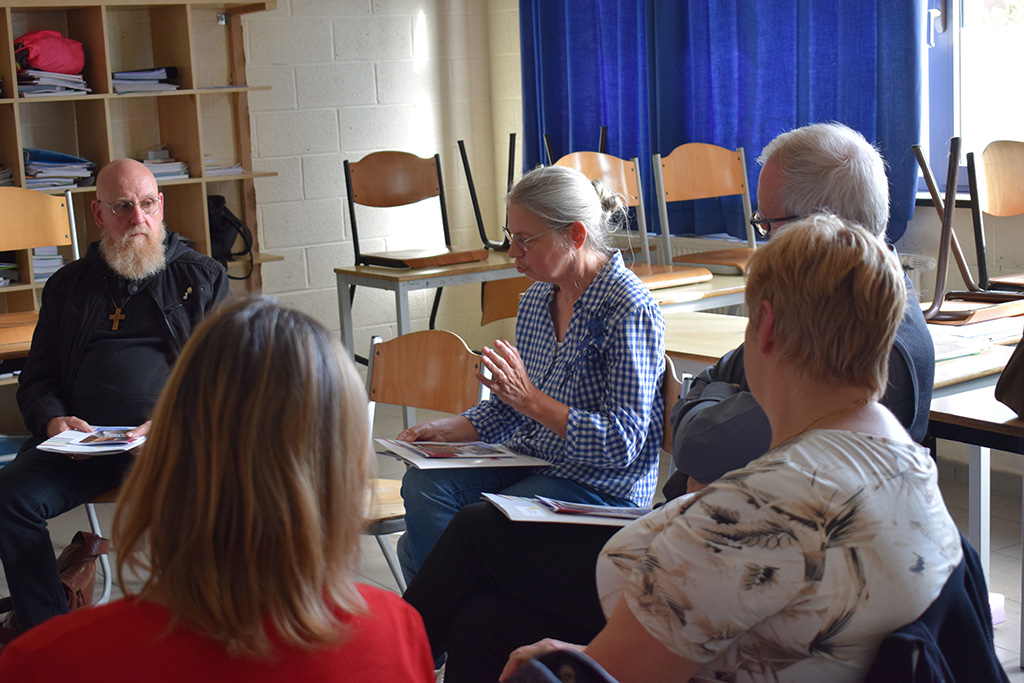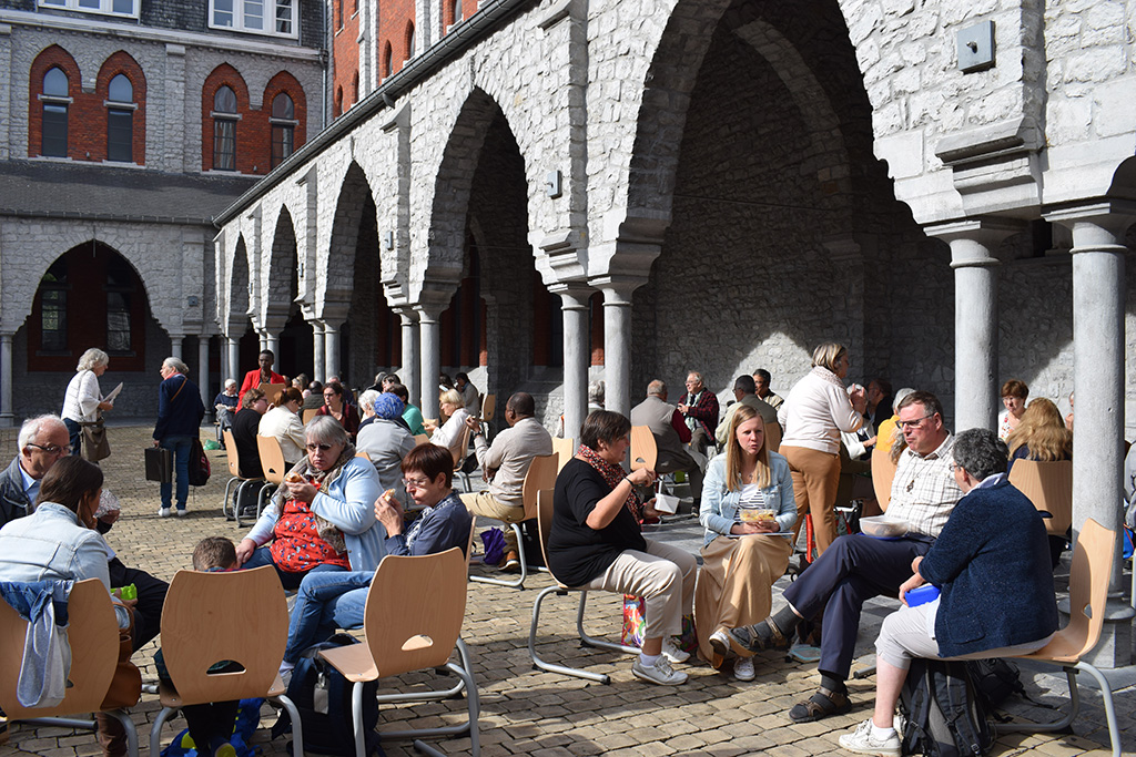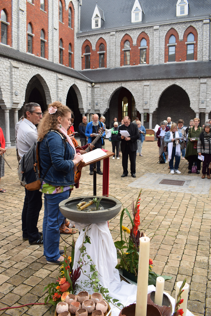 Dès l’entrée dans le cloître, les membres des services ont offert un accueil chaleureux comme pour illustrer l’accueil des futurs parents demandant le baptême. Loin de laisser les participants sans ressource, l’équipe porteuse a donné à chacun d’eux une pochette remplie d’idées pour les aider dans leur réflexion sur le baptême et leurs missions sur le terrain.