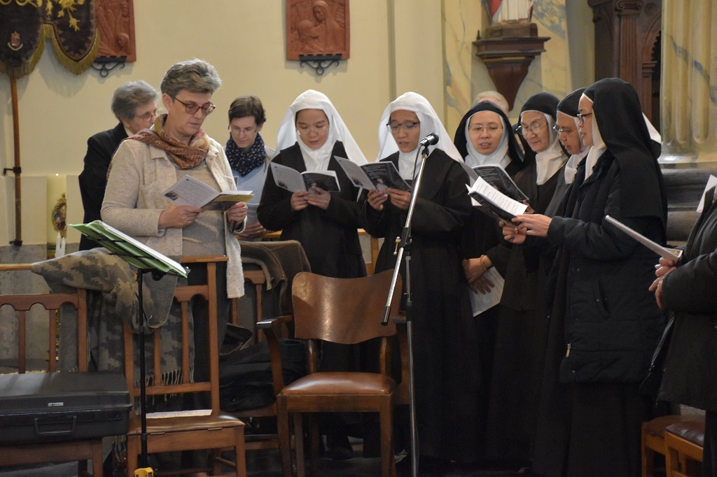Durant les vêpres qui ont suivi, le Magnificat a été chanté en vietnamien par les Carmélites de Boussu. Avant de quitter l’église, les membres du service de la Vie Consacrée, réunis autour de notre évêque, se sont rassemblés pour une petite photo souvenir.