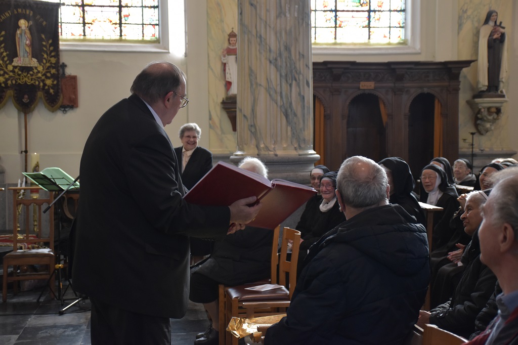 « Je pense que le témoignage de la vie consacrée dans le Diocèse de Tournai est de manifester pour le moment la confiance en l’avenir, car celui-ci ne nous appartient pas mais il appartient à Dieu » a-t-il souligné. Il a conclu son discours par ces mots : « Certains ont pensé, après le Concile Vatican II, que le Seigneur les appelait pour sauver l’Église. Nous ne sommes pas appelés pour sauver l’Église. C’est Dieu qui dans son dessein éternel sauve le monde, tous les êtres humains. Et nous, comme membres de la vie consacrée, comme fidèles laïcs du Christ, comme prêtre ou comme évêque, nous accueillons ce salut et nous en témoignons par notre vie entière dans l’action de grâce ».