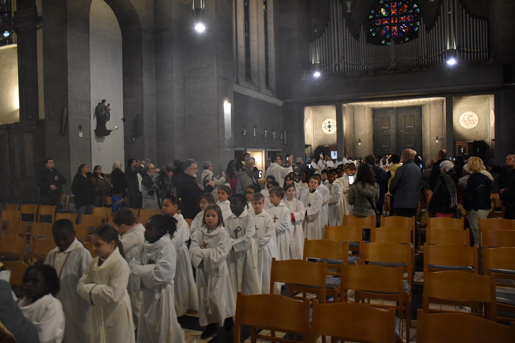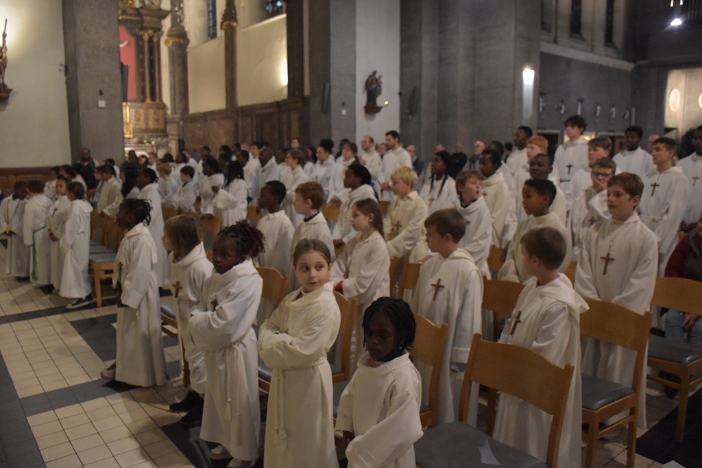 Malgré le mauvais temps, environ 120 acolytes et leurs accompagnateurs ont fait le chemin jusque Charleroi pour participer à cette rencontre annuelle. Il faut dire que le programme était intéressant : visite de l’église Saint-Christophe, ateliers, grand jeu sur les saints et messe de clôture présidée par Mgr Harpigny.