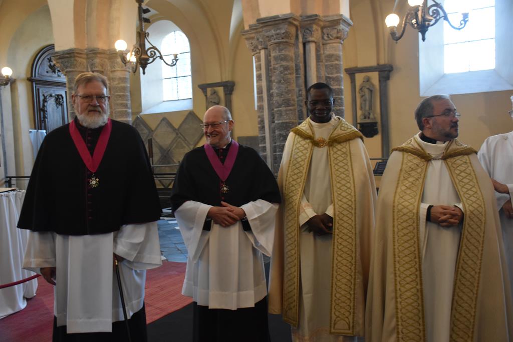 Le 100e évêque a alors entonné le Te Deum Laudamus, repris ensuite par la maîtrise de la Cathédrale pour une large assemblée, au-devant de laquelle se trouvaient –pour représenter les différents niveaux de pouvoir de notre pays– le bourgmestre de Tournai Paul-Olivier Delannois, le Procureur du Roi honoraire Christian Henry et le colonel Manuel Da Conceiçao Lima, à la tête du Quartier militaire de Tournai.