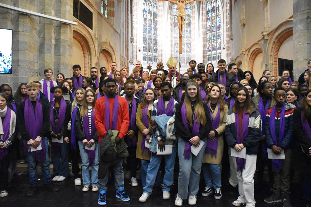Lors de l’Appel décisif, chaque catéchumène est appelé.e par son nom, s’avance et est présenté.e en quelques mots à la communauté. L’écharpe mauve alors déposée sur ses épaules est le signe du chemin de conversion et de lumière qui prépare à recevoir les sacrements de l’initiation chrétienne, lors de la prochaine Veillée pascale. Un peu plus tard, chacun et chacune inscrira son nom dans le registre. Et pour Mgr Harpigny, qui présidait cette célébration, faire cette démarche en un seul lieu est porteur de sens: «C’est vrai qu’on est chrétien ‘sur place’, là où on est, mais en même temps [par l’Appel décisif, les scrutins,… ndlr] on entre dans l’Église. Rentrer dans l’Église universelle, c’est rentrer dans une portion de l’humanité que Dieu reconnaît comme son peuple.»