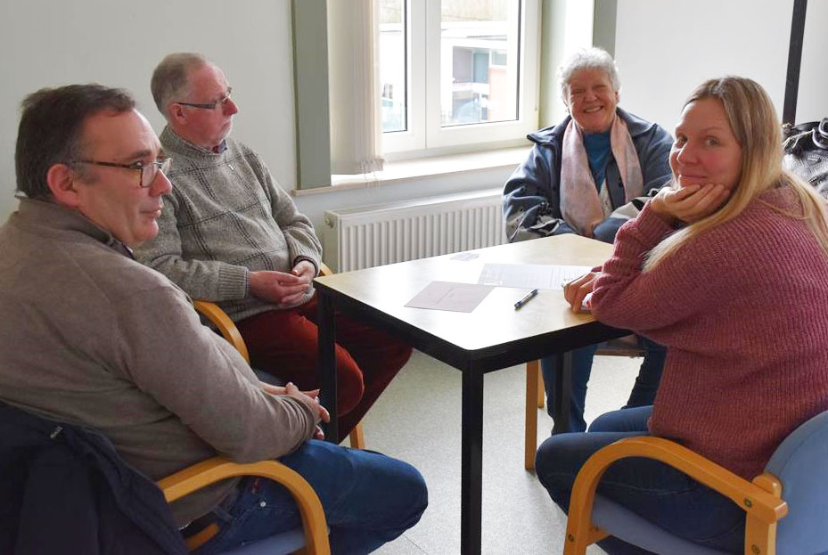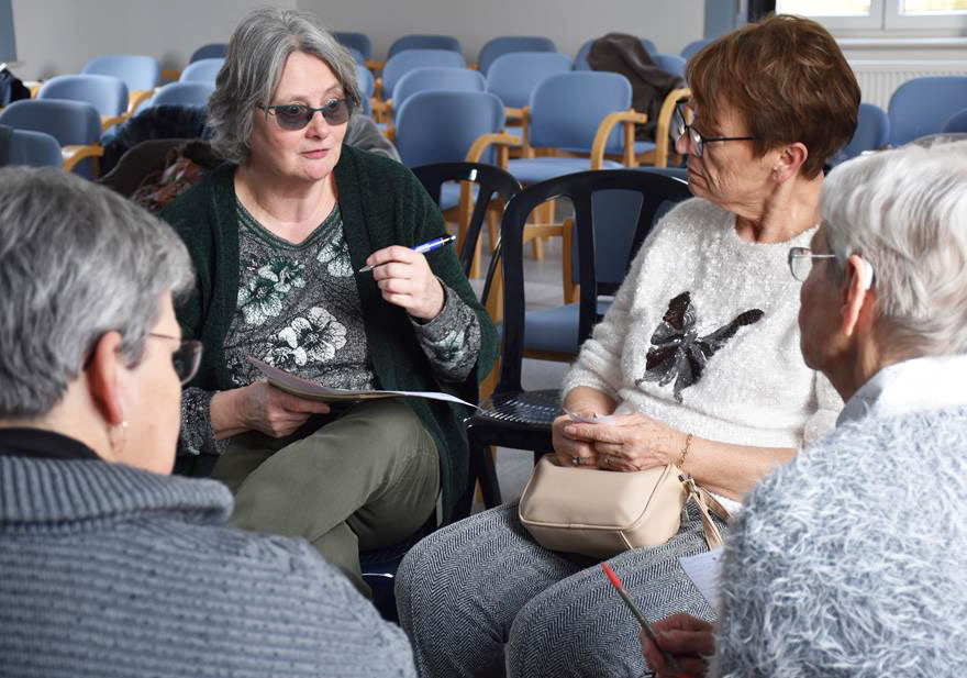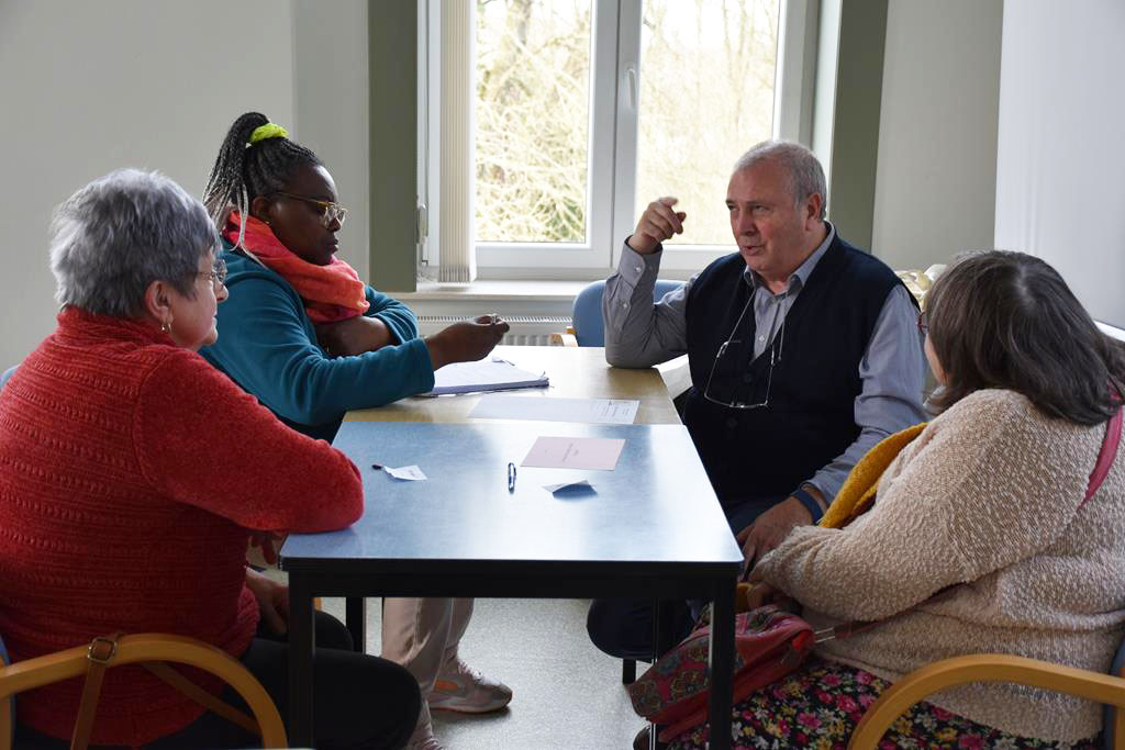 Quelques témoignages rassemblés dans une brève vidéo ont lancé leur réflexion. Blessures, conversation avec soi, souvenirs traumatiques, dépression, résilience, pandémie, amour de soi,… Utiliser la souffrance comme tremplin vers des choses positives… Accepter de perdre le contrôle sur son environnement. Accueillir le silence et voir ce qui en ressort. Beauté de l’engagement volontaire et gratuit. Vieillir et découvrir ce que l’on est encore capable de vivre. C’est forts de ces notions et de ces phrases pleines de sens, pleines de vie, que les petits groupes se sont éparpillés dans les nombreuses salles de la maison de Mesvin pour discuter, s’écouter et se dire, chacun et chacune dans toute sa diversité.