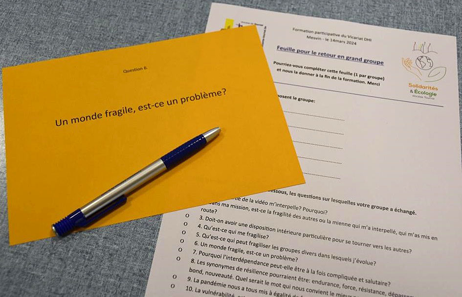 Concept original, pour structurer les échanges, une série de questions. Mais pas une liste que l’on reçoit pour y piocher à son gré et selon ses affinités, non. Toutes les 8 minutes, l’une des petites mains de l’organisation de l’après-midi faisait une incursion dans les groupes pour proposer une nouvelle demande: «Dans ma mission, est-ce la fragilité des autres ou la mienne qui m’a interpellé, qui m’a mis en route?», «Doit-on avoir une disposition intérieure particulière pour se tourner vers les autres?», «Qu’est-ce qui me fragilise?» Ou encore: «Un monde fragile, est-ce un problème?», «La vulnérabilité, est-ce un ingrédient inhérent à notre condition humaine?»