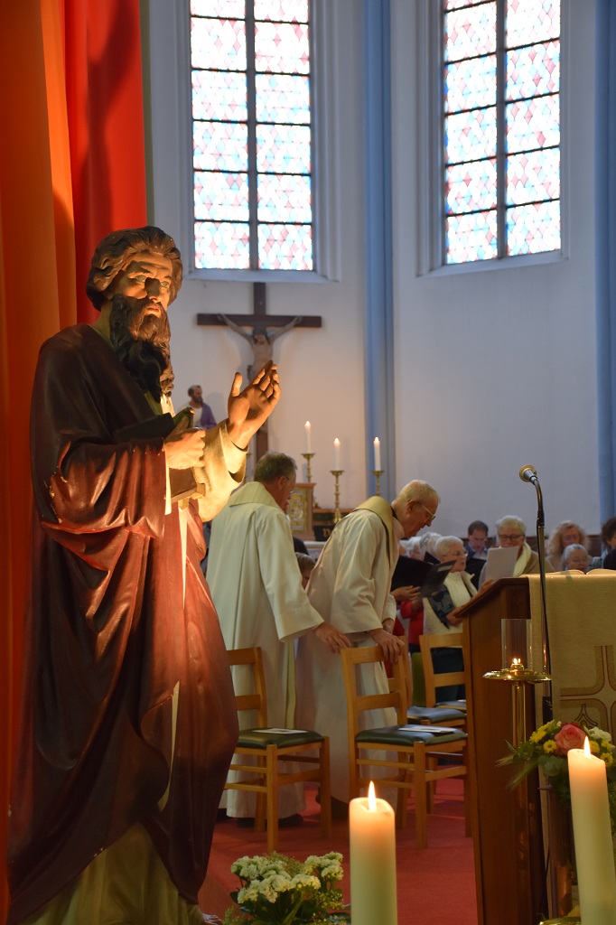 «Plus qu’il y a cinquante ans, j’ai senti aujourd’hui le Corps du Christ en nous et j’ai senti Son Sang couler dans nos cœurs. Au début de la célébration, je regardais vers le maître-autel et je me dis ‘il y a une statue qui a disparu!’». Et voilà que tout à coup j’ai vu qu’on l’avait mis là, plus près de vous», a-t-il ajouté en désignant la statue de saint Paul installée auprès de l’autel. «Alors que puisse, sous la conduite de ce si grand patron, de cet apôtre, la paroisse du Risquons-Tout vivre à jamais!»