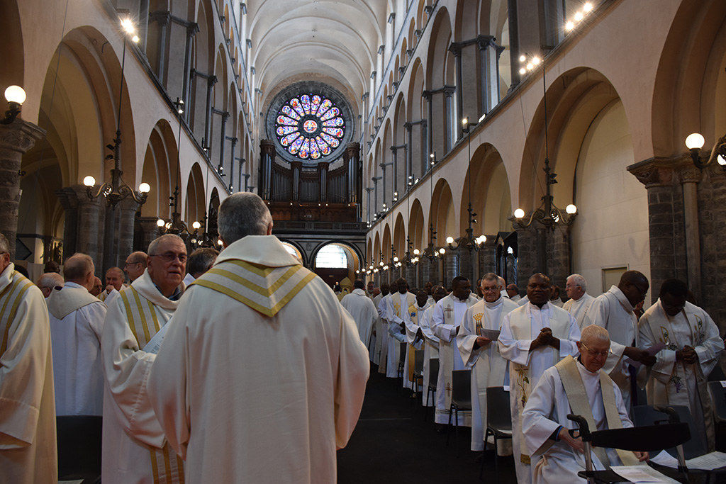 Mgr Harpigny tenait à exprimer sa gratitude à tous les prêtres du diocèse. En effet, ils ont tous répondu favorablement à l’appel de Dieu en s’engageant dans le sacerdoce. En acceptant leur vocation, ils sont entrés dans ce que Dieu a comme dessein pour l’humanité. Ils ont également reçu une solide formation de sept années avant de faire ce choix. Mgr rappelle néanmoins que chaque prêtre qui est envoyé en mission se retrouve, après son ordination, confronté à des réalités bien différentes de leurs années en tant que séminaristes. Face à ces nombreux défis, il encourage à accueillir la nouveauté comme un message de Dieu.