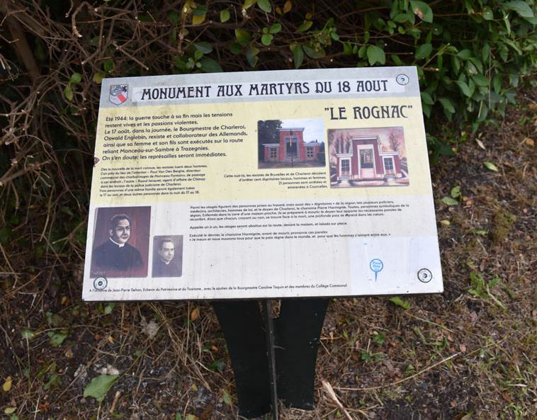 Pendant une nuit, ils seront entassés dans la cave basse et exigüe d’une maison toute proche du Rognac. Au petit matin, ils en sortiront pour être abattus, l’un après l’autre, d’une balle dans la nuque. Seuls trois des otages échapperont à la mort. Huit décennies plus tard, personne ne les a oubliés, à Courcelles. Un grand monument a été dressé un peu plus bas en leur hommage, leurs noms gravés dans le marbre et dans les mémoires.