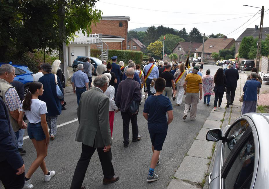 Après une minute de silence devant la plaque commémorative, tout le monde descend jusqu’au monument des martyrs. En ce 80e anniversaire, la bourgmestre de Courcelles évoque la tuerie, les souffrances de la Seconde guerre mondiale, les atrocités rexistes. Et lance un appel pour l’avenir: «C’est à travers la mémoire que nous honorons les victimes et que nous transmettons aux générations futures les leçons cruciales de notre histoire. Ne jamais oublier signifie également demeurer vigilants face aux menaces de haine et d’intolérance qui persistent encore aujourd’hui.»