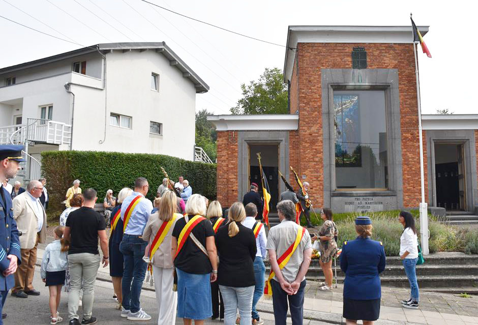 Lentement, la bourgmestre égrène le nom des 19 victimes du 18 août 44. Après une nouvelle minute de silence et la sonnerie aux morts, la mélopée du Chant des partisans s’élève, les paroles résonnent pour une assemblée recueillie. Dépôt de fleurs au pied du monument, défilé des participants devant les noms et les photos des martyrs, à l’intérieur de cette chapelle du souvenir…
