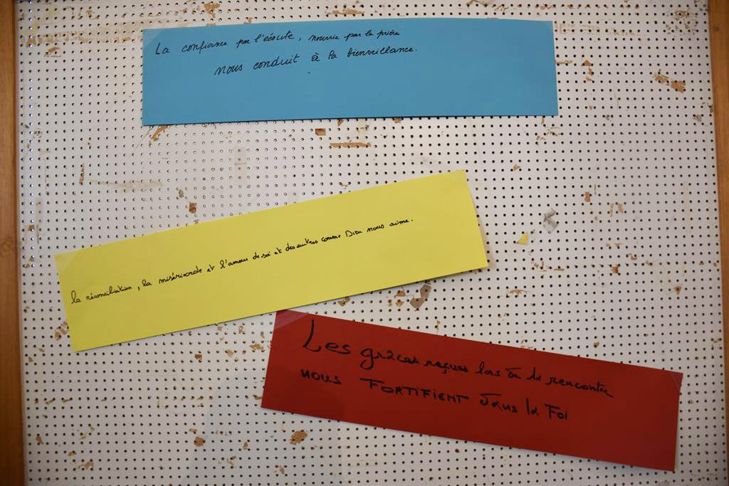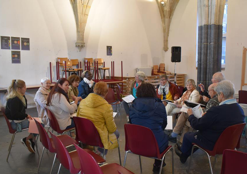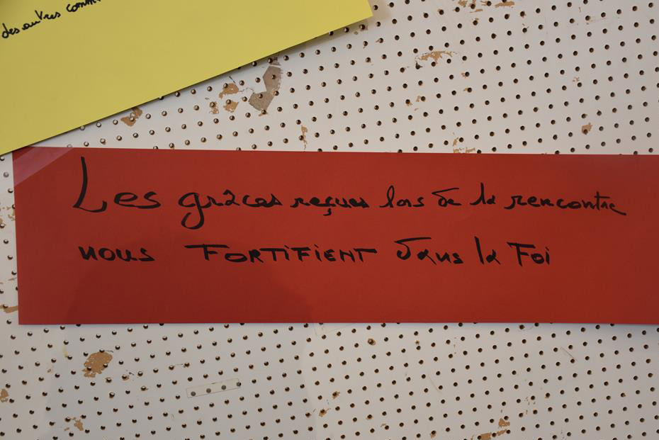 D’autres témoins se sont relayés dans l’après-midi pour partager un petit bout de leur vie, de leur expérience. Sr Anne, infirmière puis institutrice, a raconté comment la maladie –invisible fibromyalgie– avait donné un tout autre sens au mot «fragilité». Douleurs, épuisement, solitude. Descente aux enfers. S’entourer des personnes qui aident à se remettre debout, à accepter la maladie. Apprivoiser son corps malade et son cœur triste. «Dieu fait route avec moi. C’est grâce à la fragilité causée par la maladie que j’ai pu mieux me découvrir.»