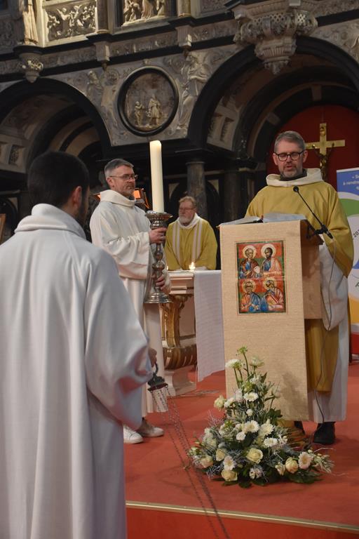 Indiquant la bannière placée derrière lui sur l’estrade, Mgr Harpigny a souligné la citation inscrite au-dessus du logo du jubilé : « Soyez toujours prêts à rendre compte de l’espérance qui est en vous » (1 Pi 3, 15). « Essayez de montrer ce qui vous habite, ce qui vous fait vivre », lance-t-il. « Faites-le avec douceur, inutile d’insister, de taper sur la table, mais faites-le. »