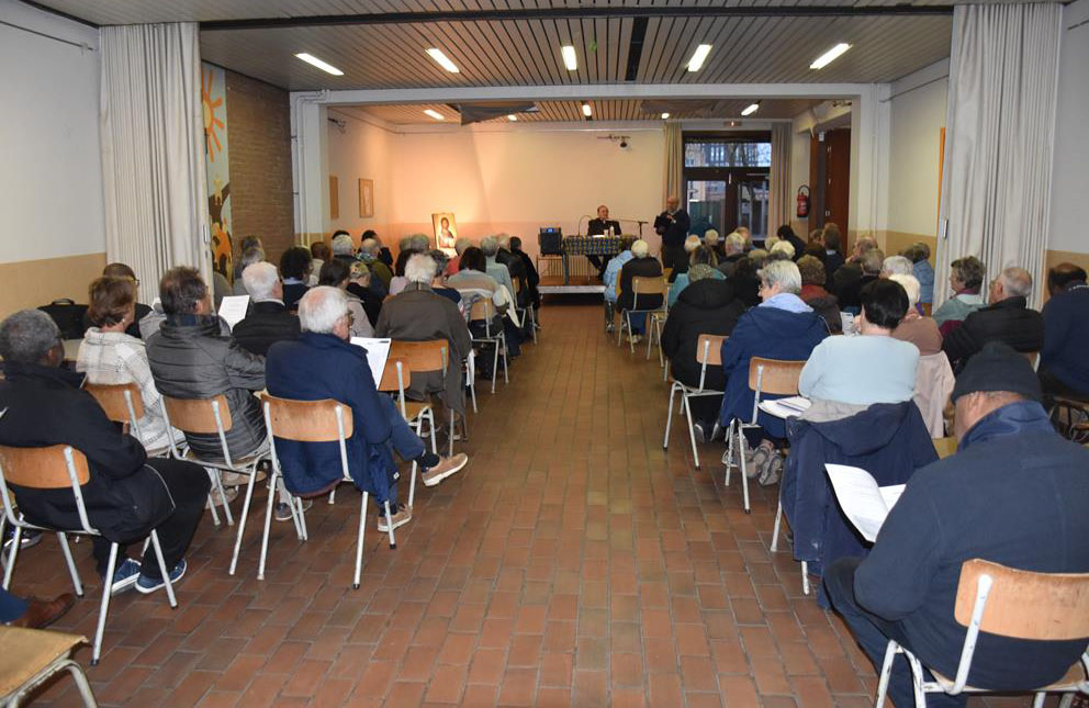 Mercredi 26 mars, une petite centaine de personnes ont assisté à une présentation par Mgr Harpigny de la personne de Jésus telle qu’elle est vue dans le Coran. Jésus y est cité à de nombreuses reprises. Il est appelé «Issa (Jésus), fils de Marie», affirmation qui veut démentir la filiation chrétienne faisant de Jésus le Fils de Dieu. Sa naissance est de nature miraculeuse, d’une femme qui n’a pas connu d’homme.