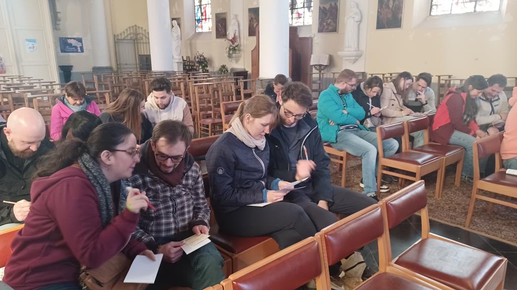 La journée s’est clôturée par une initiative originale proposée par l’abbé Philippe : la rédaction d’une capsule temporelle. Chaque fiancé/fiancée a pu écrire un message qui sera envoyé à son époux/épouse dans 5 ans, donc en 2029 !