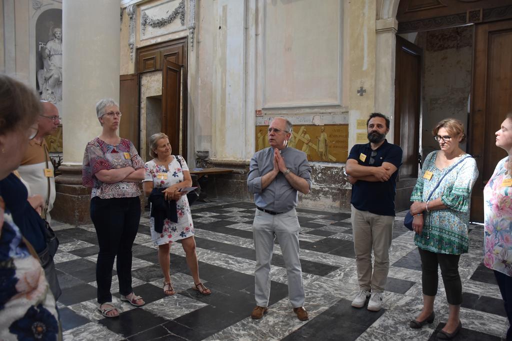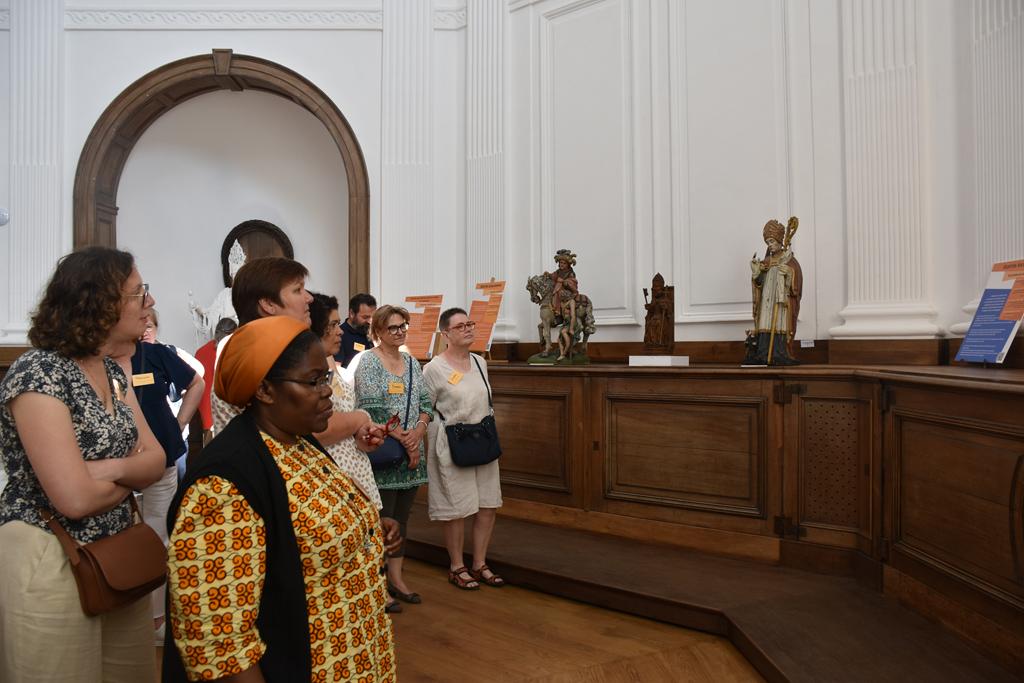 Samuël Christiaens, membre du service diocésain «Art, Culture et Foi», a emmené les visiteurs sur les traces des «Saints populaires, saints oubliés en Hainaut». Saint Martin, par exemple, est un saint très présent dans notre province: il existe en effet 84 paroisses portant son nom. À l’opposé se trouve sainte Rictrude qui, comme sainte Waudru, est une mère de famille de haut rang devenue religieuse puis abbesse d’un monastère dans le nord de la France. Elle était particulièrement vénérée dans l’église de Bruyelle avant de tomber en désuétude au fur et à mesure des siècles.