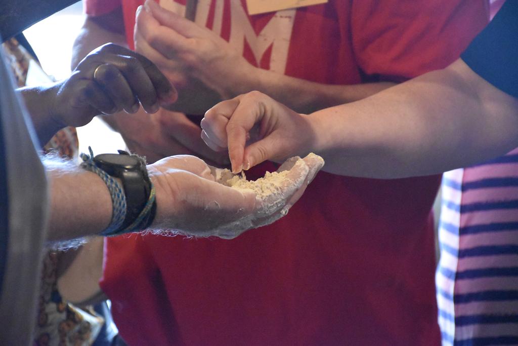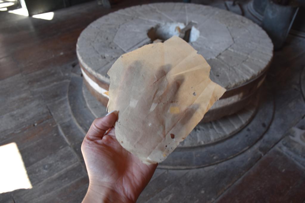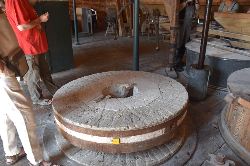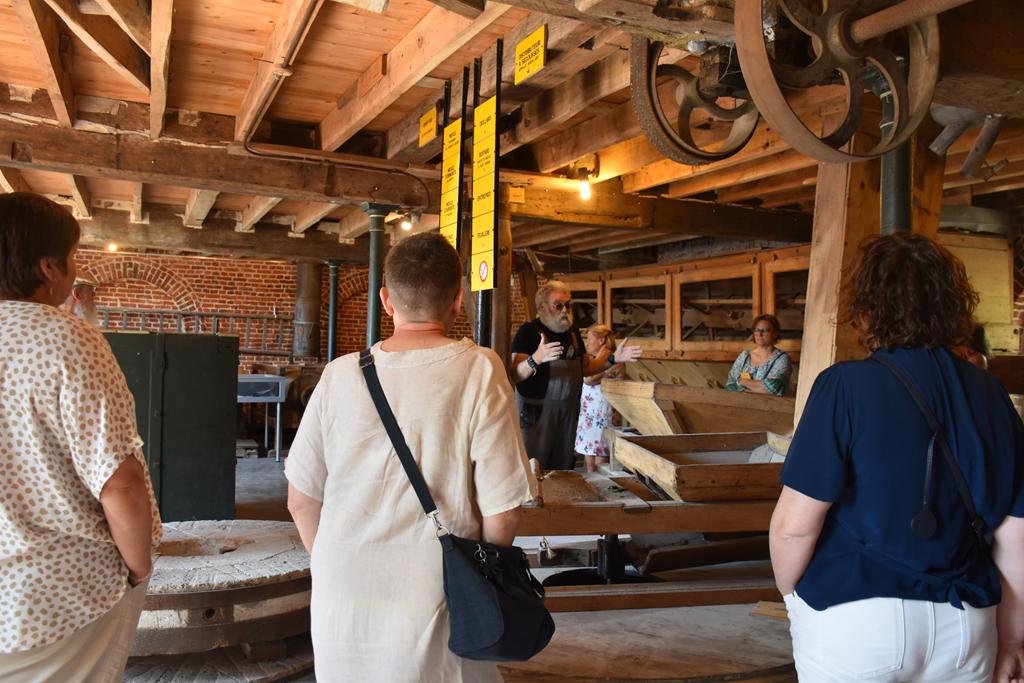 Lorsqu’on construisait une abbaye pour un ordre religieux, comme c’est le cas à Bonne-Espérance, il convenait aussi de faire construire un moulin afin de pouvoir être autosuffisant. Pas si facile de transformer le blé en farine! Yves Maerten, le guide du jour, a initié les animateurs au métier de meunier et à la découverte des différents outils pour créer de la farine.