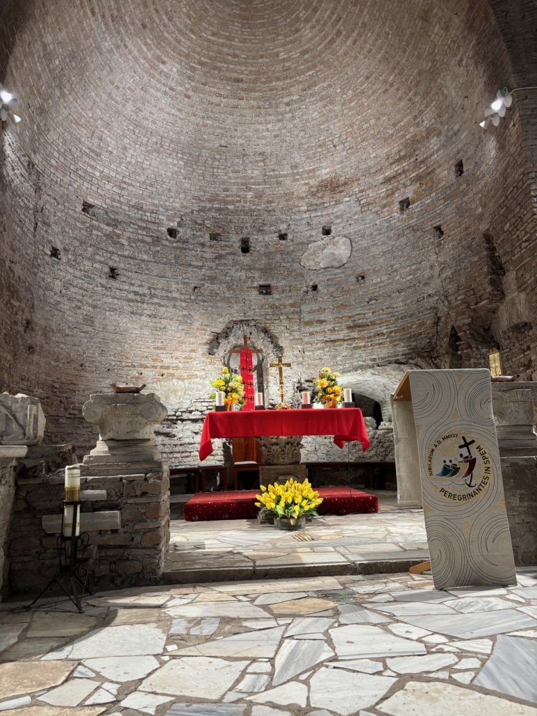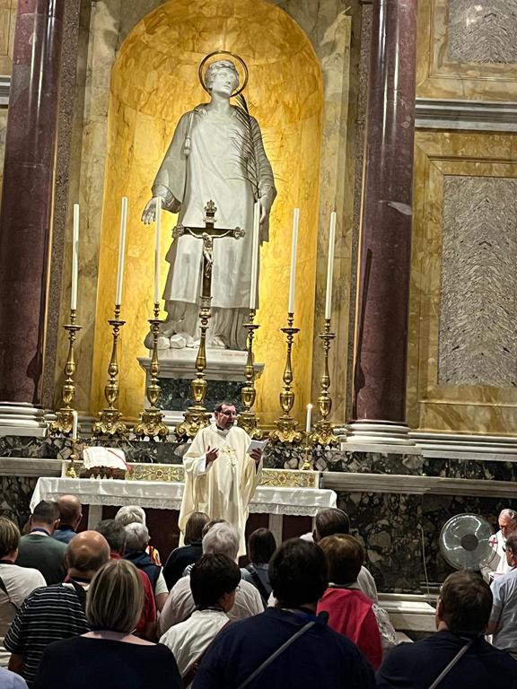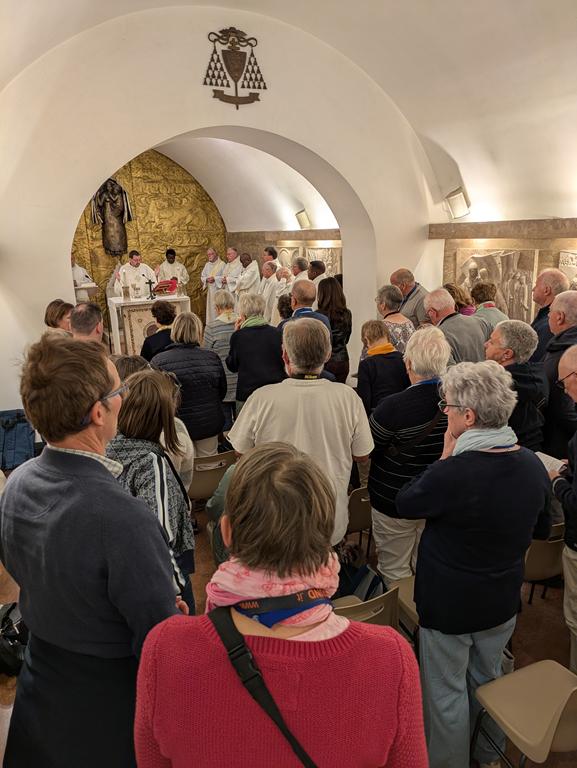 Aujourd’hui, nous avons pris la direction de la basilique Saint-Pierre avant le lever du soleil. La fatigue ? Vite oubliée grâce à la beauté de la célébration dans la chapelle Notre-Dame Reine des Hongrois, dans les grottes vaticanes.