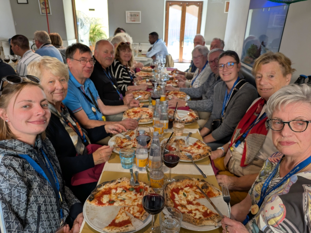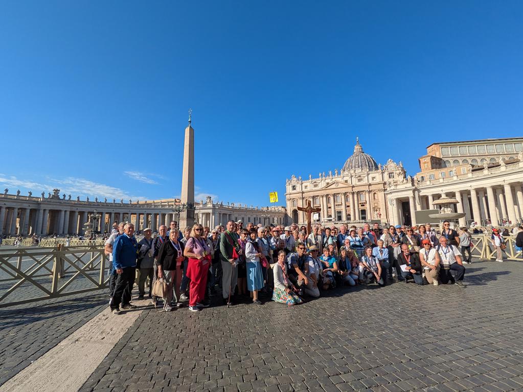Ce lundi, 89 pèlerins de notre diocèse se sont envolés dès l’aube vers la Ville éternelle. Après une installation rapide à l’hébergement et un repas 4 services, nous avons partagé nos premiers moments forts :
