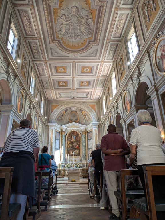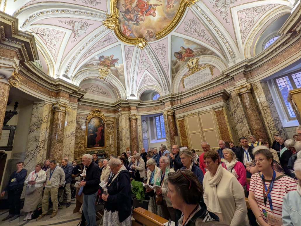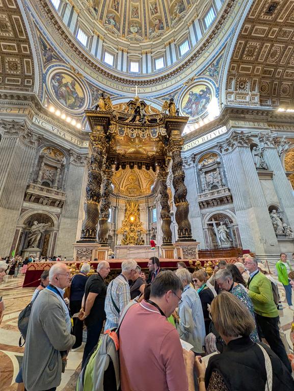 L’après-midi, nous avons célébré à l’église Saints-Michel-et-Magne. Cette « église des Frisons », cachée derrière les façades voisines mais située à deux pas de la place Saint-Pierre, a été une belle découverte et l’accueil y fut chaleureux. Enfin, pour plusieurs pèlerins, le point culminant de la journée fut la visite des musées du Vatican et l’émerveillement devant la chapelle Sixtine, plus impressionnante encore que dans les récits.