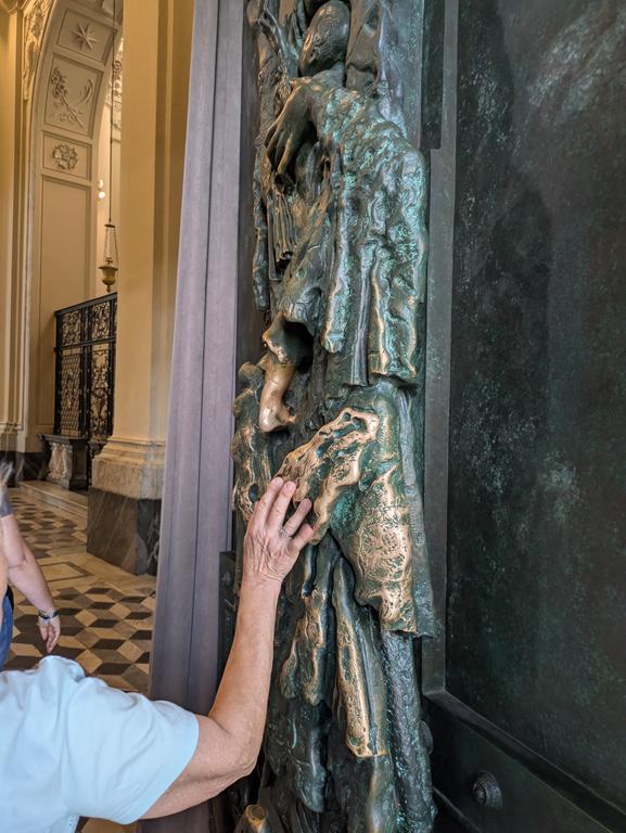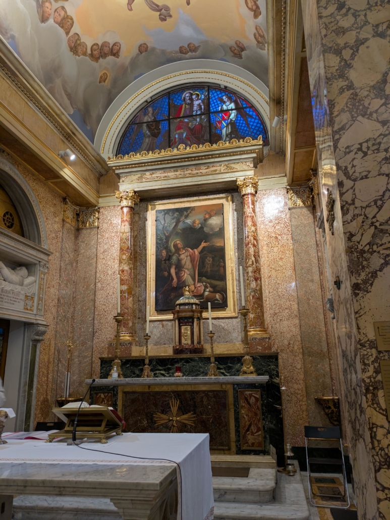 Après un délicieux dîner, nous avons franchi notre troisième Porte Sainte, celle de la basilique Saint-Jean-de-Latran. La visite de la « cathédrale du Pape » nous a conduit jusqu’à découvrir son magnifique cloître, et enfin le baptistère où nous avons eu la chance de célébrer.
