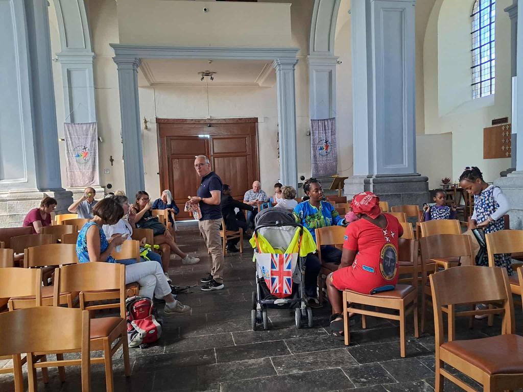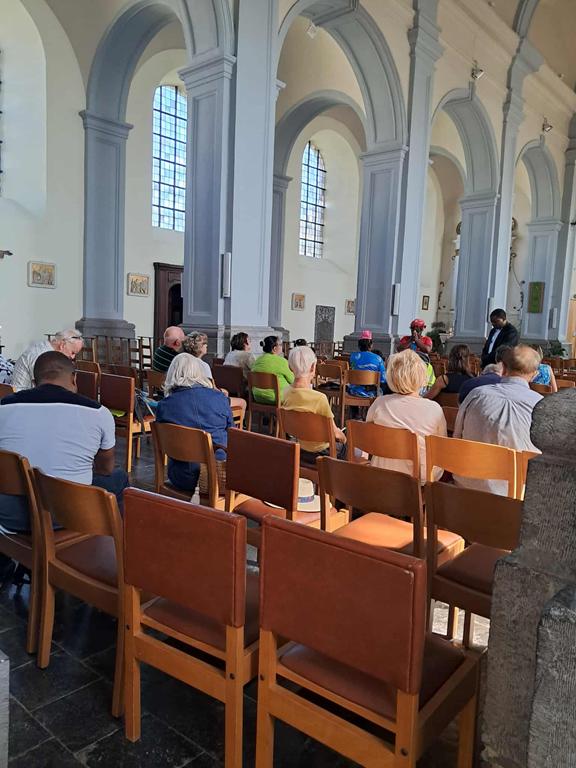 Arrivée vers midi à l’église de Jurbise pour une pause et se restaurer. Chants et prières ont résonné dans l’église.