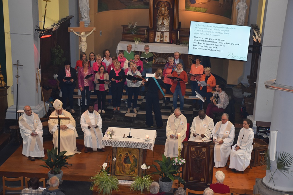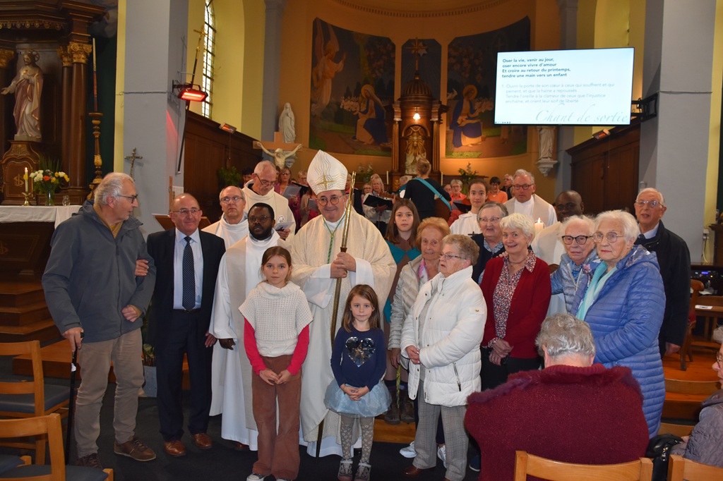 Une messe solennelle présidée par notre évêque Mgr Guy Harpigny, accompagné de notre Doyen  Daniel Procureur.  Les abbés Emery Kenda,  Patrick Banze et Jean-Marc Lesoir, tous trois prêtres de la paroisse, était également présents pour cette célébration  rehaussée par la présence de Michel Vermeulen, Doyen de Mouscron, mais surtout ancien doyen  et curé de nos paroisses.