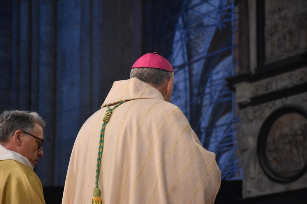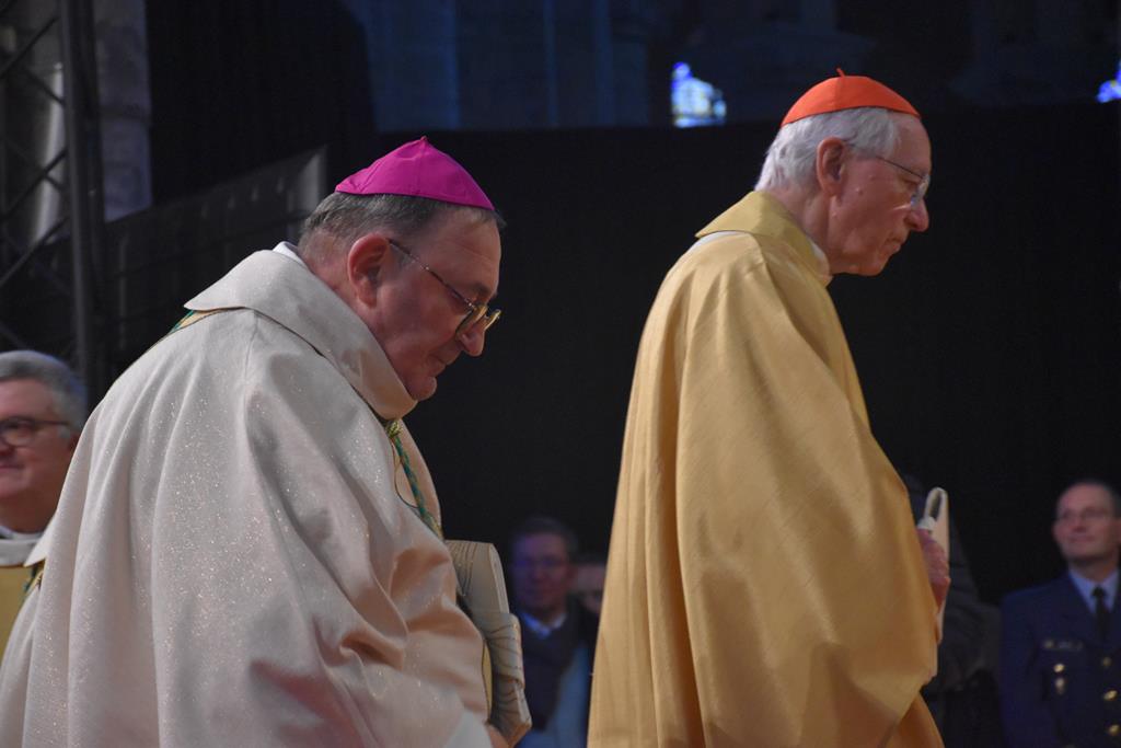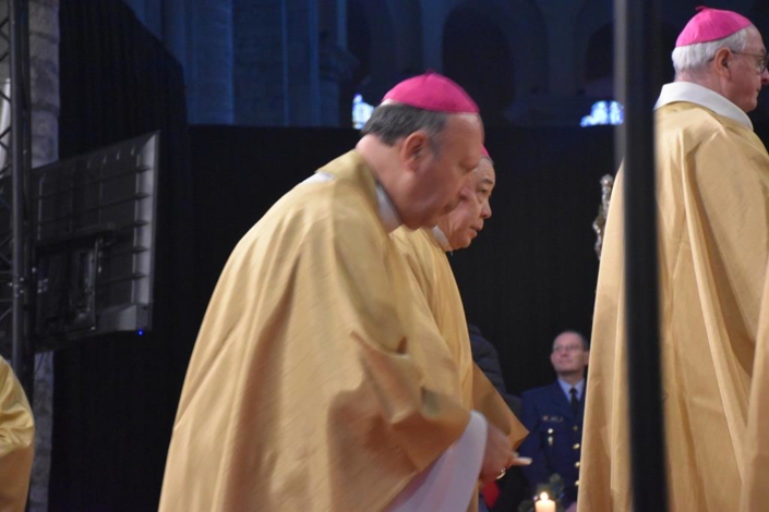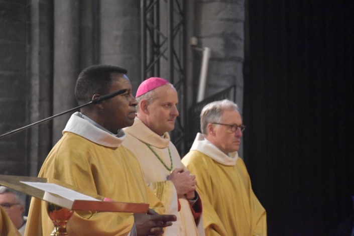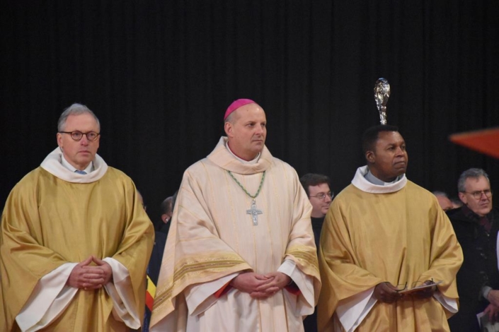 Au cours d’une chaleureuse célébration de près de trois heures, le nouveau pasteur de l’Église du Hainaut a reçu l’imposition des mains, l’onction du Saint chrême et les insignes de sa charge de la part de l’archevêque, Mgr Luc Terlinden. Parmi les évêques qui l’entouraient se trouvaient son prédécesseur, Mgr Guy Harpigny et le tout nouvel évêque de Namur, Mgr Lesjeune.