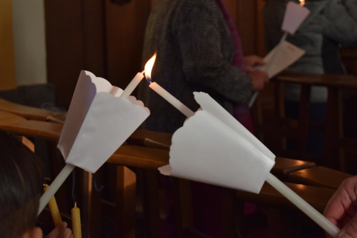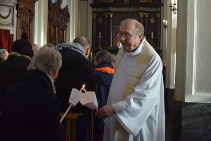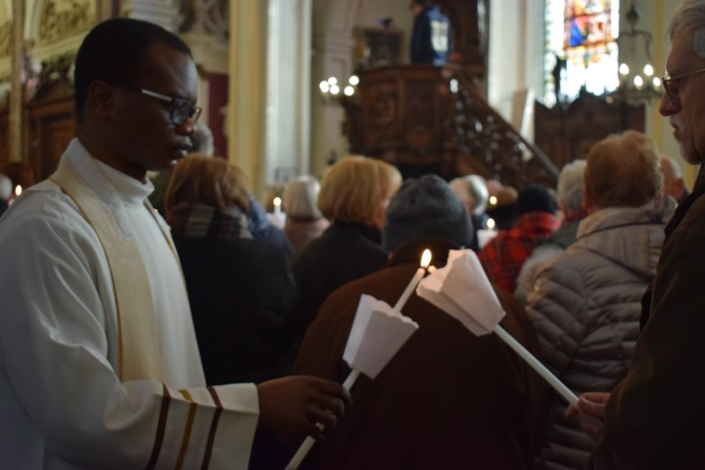 La Lumière avait une place importante dans la célébration en effet, par la bénédiction des cierges comme par le choix des chants. La beauté de la célébration était d’autant plus rehaussée par les rayons du soleil qui traversaient les vitraux du bâtiment. En lien avec cette fête, le livret de messe précisait en introduction : « En ce jour de la Chandeleur, alors que l’Église célèbre le Christ, lumière offerte au monde, nos cierges deviennent prière et nos cœurs s’ouvrent à la paix qu’il promet ». Et plus loin de conclure : « Qu’en cette célébration, la lumière du Christ et la tendresse de Marie fortifient notre foi et éclairent notre chemin ».