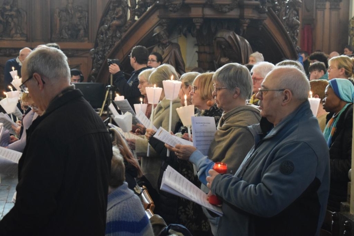 Plusieurs bénévoles ont ainsi filmé et retransmis les différentes étapes des festivités tandis que d’autres distribuaient les cierges ou plaçaient les sièges dans l’église. Des petites mains avaient également fleuri le sanctuaire, tout particulièrement l’autel préparé dans le chœur pour la statue de Notre-Dame. La chorale avait également travaillé pour préparer la célébration, afin de proposer de beaux chants qui ont fait vibrer les cœurs. Sans oublier les différentes tâches logistiques liées à la procession, au repas crêpes ou au verre de l’amitié organisé à la fin de la messe de la Chandeleur.