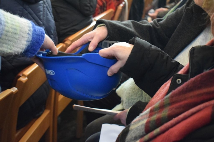 Si la construction de la Basilique ne remonte pas à 1081, celle-ci n’en reste pas moins une vénérable dame qui commence à souffrir des injures du temps. Son toit tout particulièrement nécessite d’urgentes réparations, comme l’ont rappelé à la fois le père André Luczak, et un représentant de la Fabrique d’église. « Regardez l’humidité des lieux », a d’ailleurs souligné ce dernier, parodiant en souriant le chant de communion « Regardez l’humilité de Dieu ». Lors de la collecte, un casque de chantier a été ajouté aux habituels paniers, rappelant que la recette serait consacrée aux travaux.