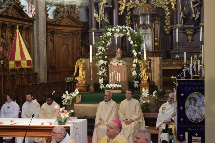 Dans l’assemblée nombreuse réunie sous les voûtes de la Basilique se trouvaient plusieurs membres de la Vie consacrée, prêtres et religieuses. Durant la célébration, ceux-ci ont renouvelé leurs vœux. Mgr Rossignol, lui-même membre des spiritains, a joint sa voix à celle de ses confrères et consœurs. À plusieurs reprises, les fidèles ont été invités à prier pour la Vie Consacrée du diocèse et pour les Vocations.