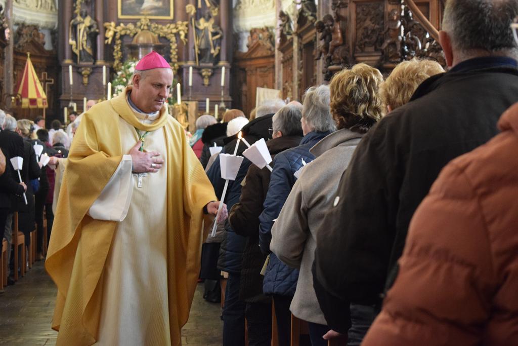 Le 2 février était le jour de la messe solennelle, présidée cette année par Mgr Rossignol. Une visite doublement symbolique, puisqu’il s’agissait de son premier passage dans ce sanctuaire. Dans le livret de messe, un message lui était adressé : « Nous lui exprimons notre accueil respectueux et confiant, heureux de recevoir son ministère et de marcher avec lui, à la suite du Christ, au service de l’Évangile et de l’Église ».