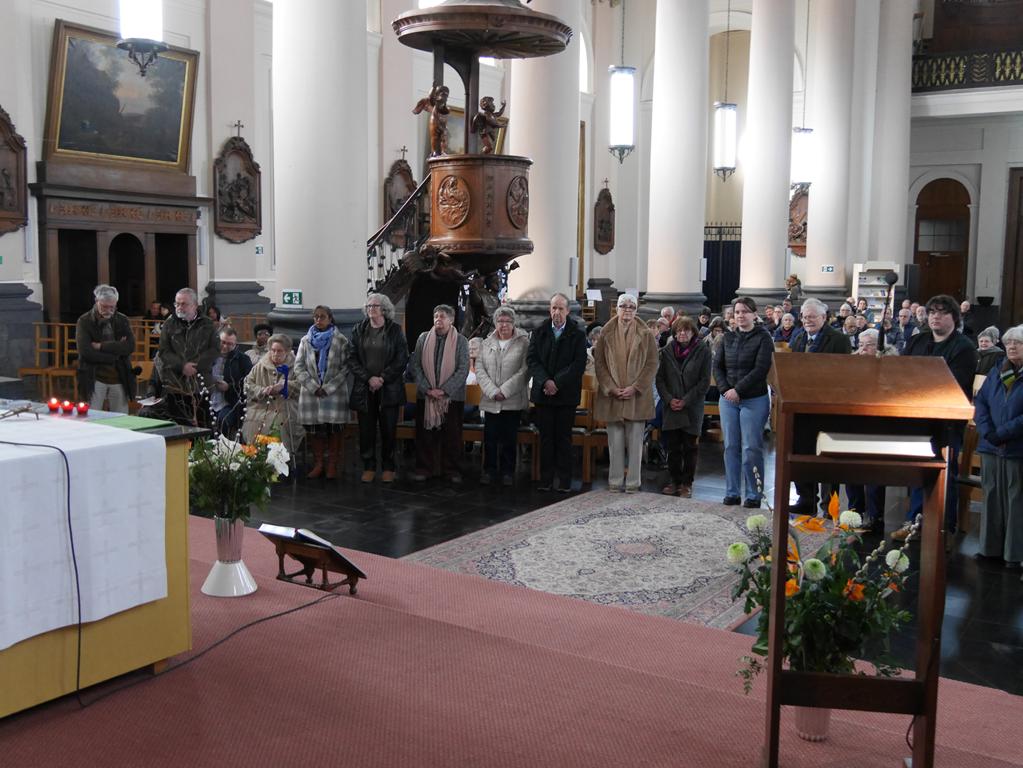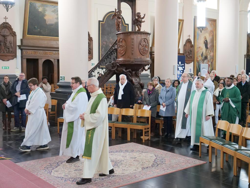Pour l’Eucharistie célébrée en l’église Saint-Julien d’Ath, M. le Doyen était entouré de tous les prêtres des unités pastorales de Ath et Chièvres. La prière des participants, venus nombreux, a été portée par la chorale formée pour la circonstance.