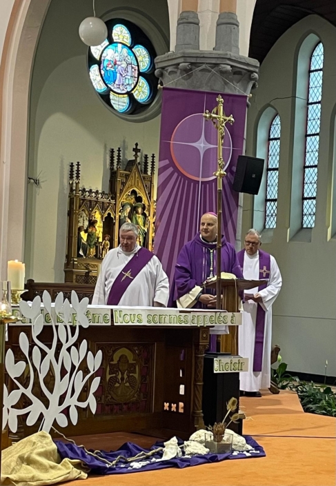 Dans une église rassemblant hospitaliers, hospitalières et communauté paroissiale, plusieurs membres ont reçu les insignes marquant leur engagement: insigne de la «jeunes hospitalité» pour remercier les plus jeunes, insigne de bronze comme signe d’appartenance à l’Hospitalité, insigne d’argent pour l’engagement, insigne d’or pour la reconnaissance des années de service lors des pèlerinages diocésains à Lourdes et à Banneux.