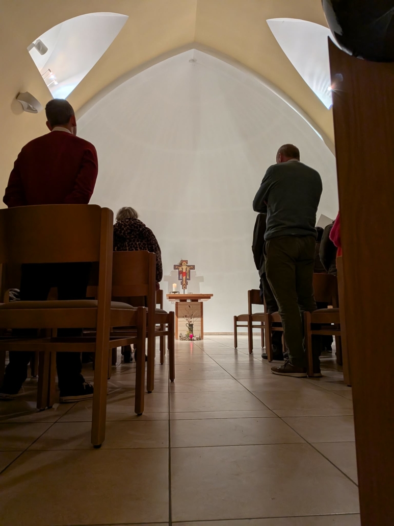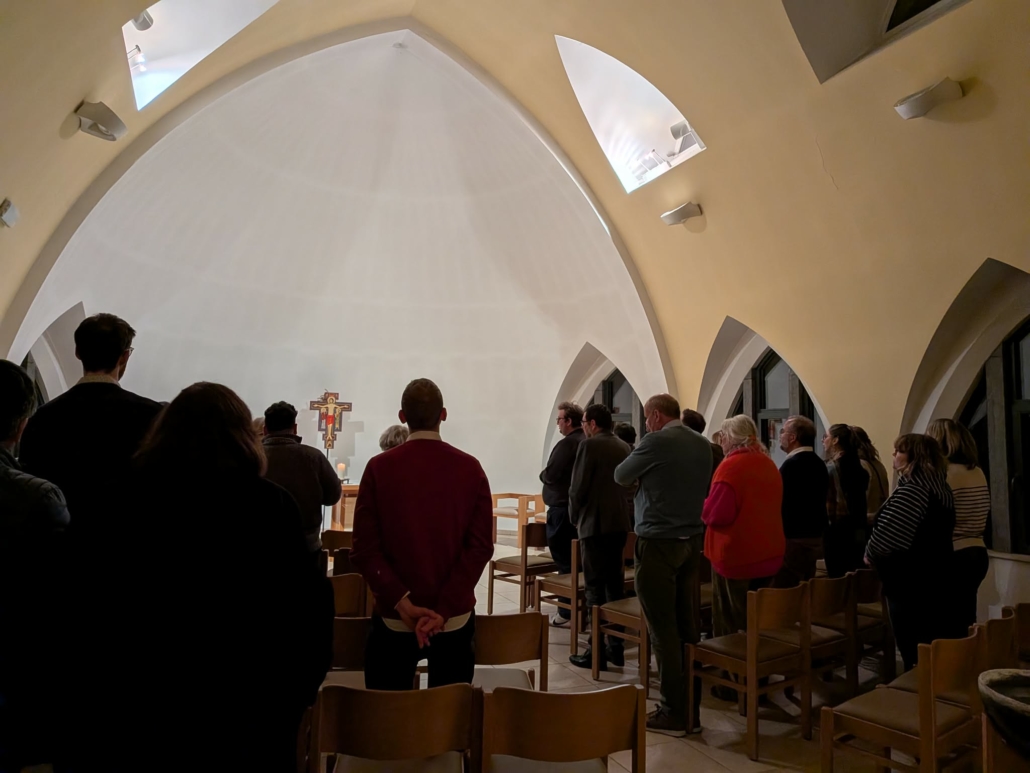 Dans un second temps, les animateurs ont pris le temps de se retrouver en petits groupes pour réfléchir à trois questions essentielles. Ces échanges ont permis de partager expériences, interrogations et convictions quant à l’utilisation des réseaux sociaux pour l’annonce de l’Évangile. Un temps de mise en commun a ensuite enrichi la réflexion de chacun, ouvrant un dialogue profond et stimulant. La soirée s’est enfin conclue dans le recueillement, par un temps de prière dans la belle chapelle de la maison diocésaine. Un moment qui leur a permis de déposer tout ce que qu’ils ont vécu et entendu, et de repartir nourris et inspirés.