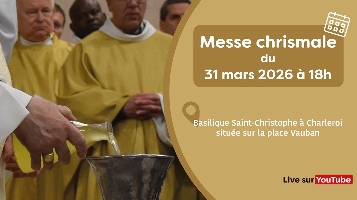 La messe chrismale sera célébrée le mardi 31 mars 2026 à 18h en la Basilique Saint-Christophe à Charleroi, Place Vauban.