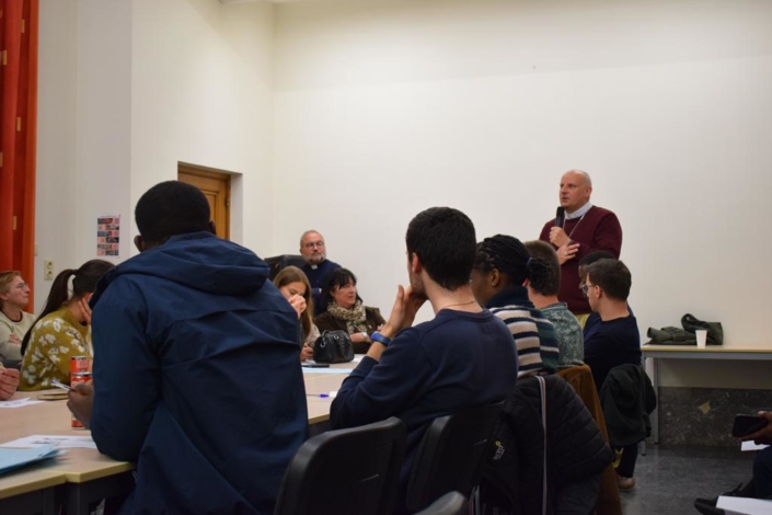 Pour l’évêque de Tournai, il semble important de rappeler la nécessité de témoigner de sa foi et de la partager tout en continuant sans cesse à se former. En réalité, on n’a jamais vraiment fini d’apprendre et assurément, on a beaucoup de choses à apprendre entre vingt et trente-cinq ans. Les jeunes sont particulièrement invités à être actifs dans un monde où l’on manque de repères et où l’on peut facilement se perdre. « Je suis missionnaire donc c’est ma posture mais je pense qu’en Église, il faut apprendre à faire communauté et à avoir le réflexe d’aller vers les personnes qui sont seules, que ce soit à l’assemblée dominicale ou dans la vie de tous les jours », répond Mgr Rossignol à une question. « Dans le service, ce qui est compliqué, c’est de s’engager et pourtant on a besoin de connaître les gens pour donner de meilleurs fruits », renchérit-il.