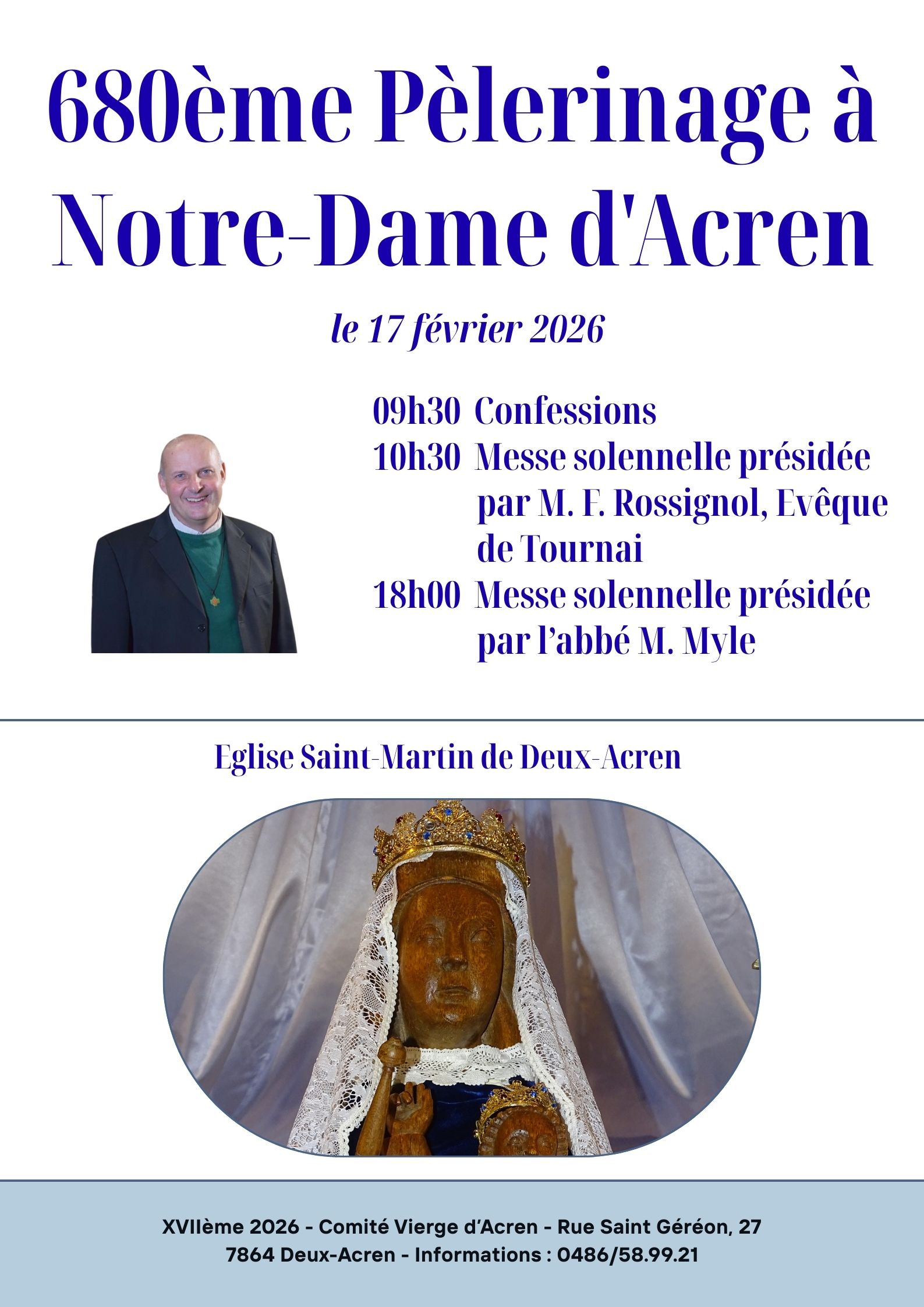 Le 680ème pèlerinage à Notre-Dame d’Acren aura lieu en l’église St-Martin de Deux-Acren; le mardi 17 février 2026.