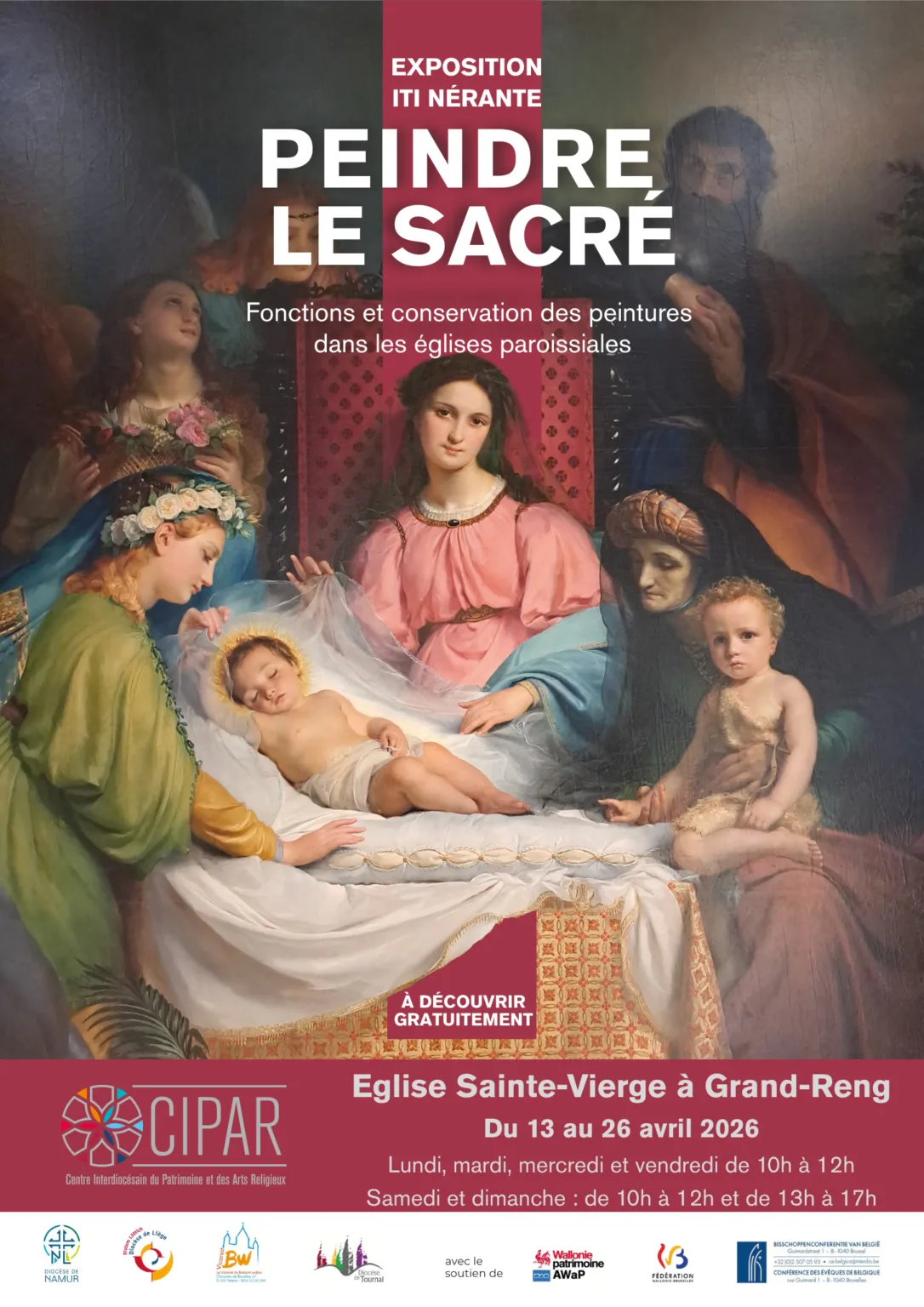 Cette exposition, présentée pour la première fois dans notre diocèse, est l’œuvre du CIPAR (Centre Interdiocésain du Patrimoine et des Arts Religieux), basé à Namur. « A travers un parcours de seize panneaux largement illustrés, le visiteur découvre comment l’image a toujours été au service de l’annonce de l’Évangile pour enseigner, émouvoir, guider la prière ou célébrer la gloire de Dieu. De la puissance dramatique des retables médiévaux à la magnificence baroque, en passant par la piété intime des tableaux de dévotion ou les chemins de croix du XIXe siècle, l’exposition souligne la diversité des formes et des fonctions de la peinture dans les lieux de culte. Elle montre combien les artistes ont donné corps à la foi de leur communauté à travers des œuvres qui dialoguent avec l’architecture, la liturgie et les fidèles » cipar.be