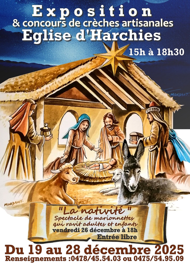 - Dépôt de votre crèche le jeudi 18 décembre à l’église d’Harchies entre 15h et 18h